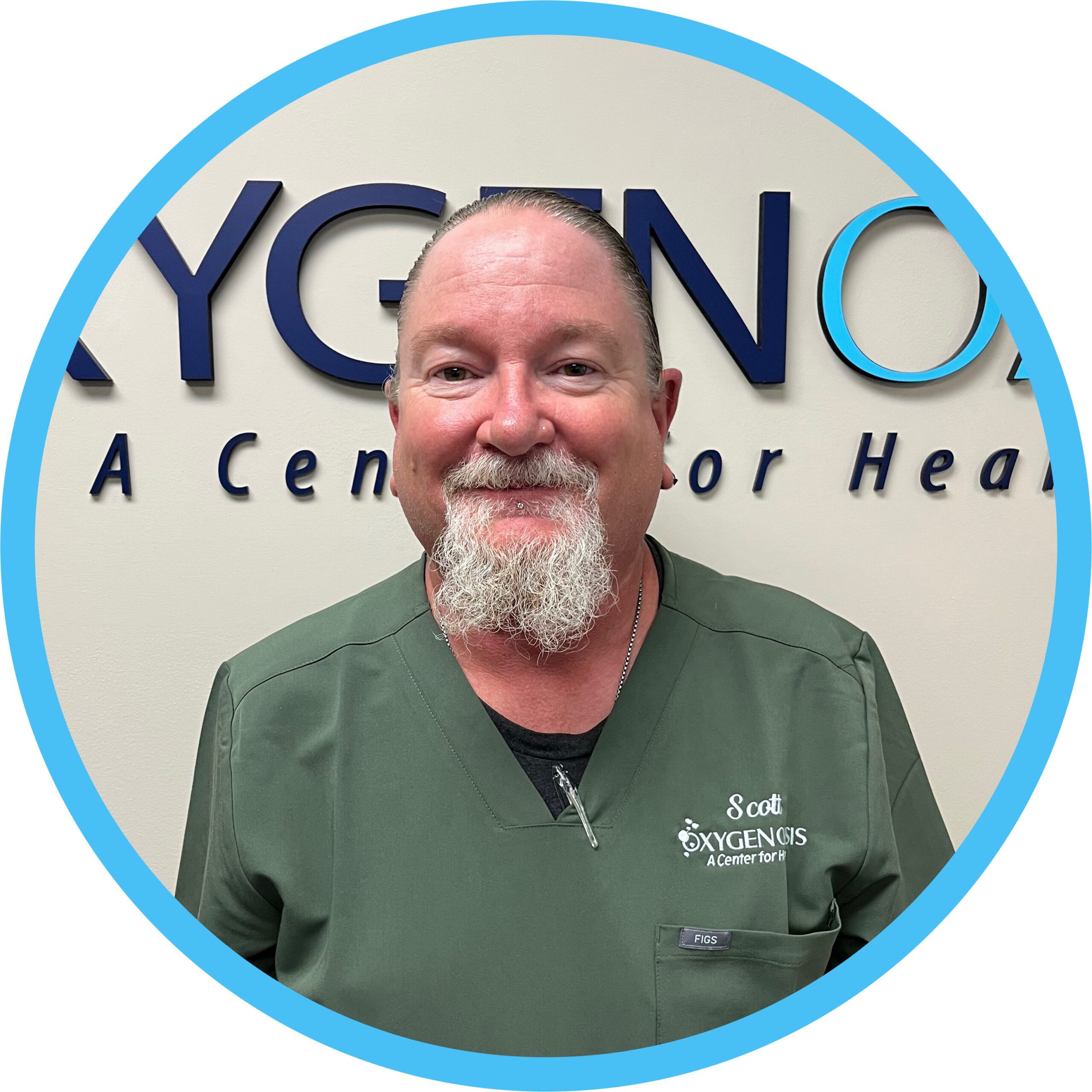 Scott’s background includes significant experience with both mono- and multi-place hyperbaric chamber operations. A proud Veteran, he served ten years as a Combat Medic in the U.S. military. His leadership and deep knowledge of hyperbaric safety ensure the highest standards of care for our patients.